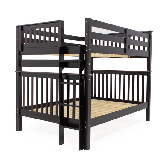 Glendale Full Over Full Sized Kids Twin Bunk Bed in Dark Cherry Solid Pine Wood