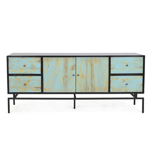 Polo Pine Wood 71" 2-Door 4-Drawer Sideboard Buffet Cabinet Metal Base