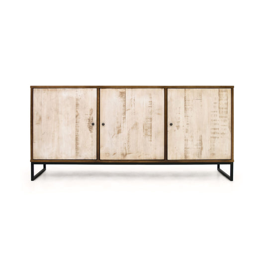 Doppo Solid Pine Wood 63" 3-Door Sideboard Buffet Cabinet Metal Base