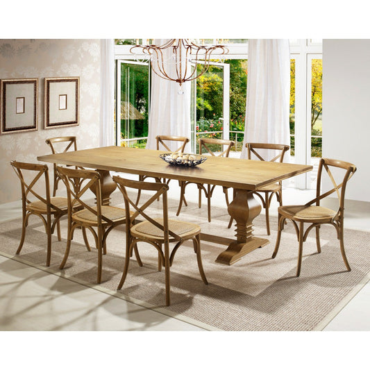 Tower Solid Pine Wood 79" Pedestal Dining Table Oak Colored
